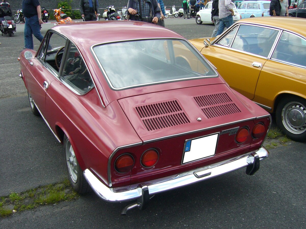 Heckansicht eines Fiat 850 Sportcoupe. "Forza Italia" = Oldtimertreffen für italienische Fahrzeuge am 30.05.2024 an Mo´s Bikertreff in Krefeld.