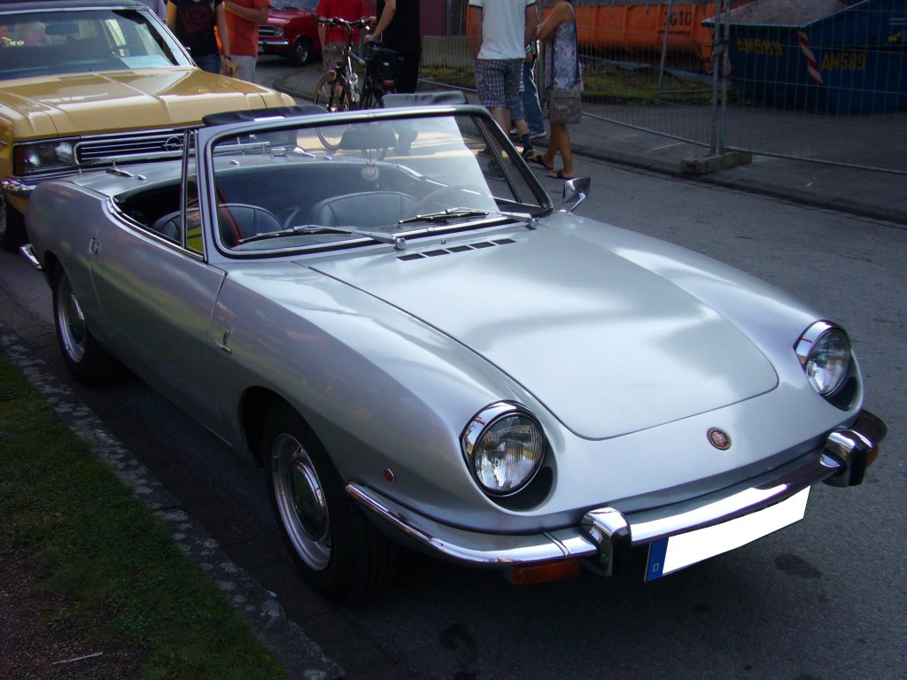 Fiat 850 Sport Spider. 1968 - 1972. Dieser flotte Zweisitzer wurde von Bertone gezeichnet. Der 903cm³ große 4-Zylinderreihenmotor leistete in seinem ersten Produktionsjahr 49 danach 52 PS. Oldtimertreffen Kokerei Zollverein am 02.10.2011.