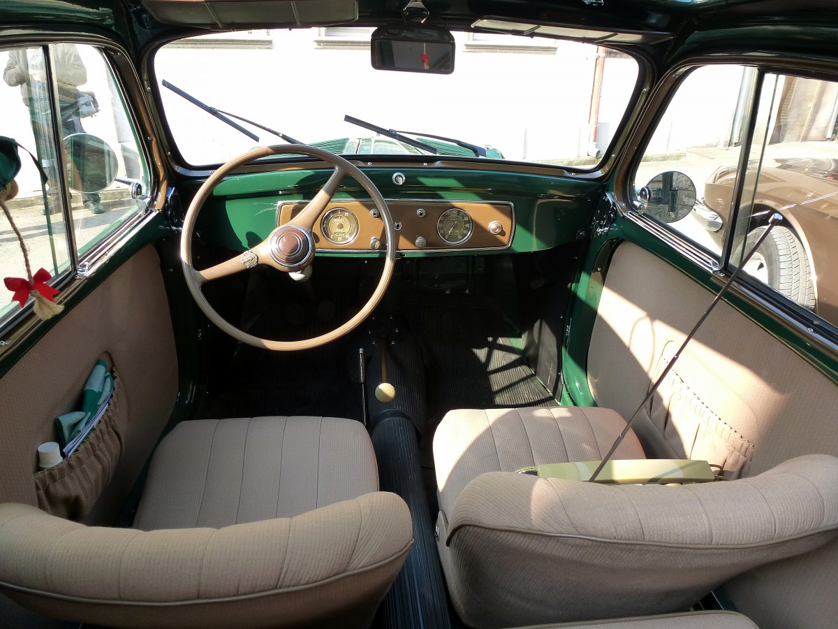 Fiat Topolino, Blick in den Innenraum der zweisitzigen Ausführung mit Faltdach, Oldierama Lörrach, März 2015