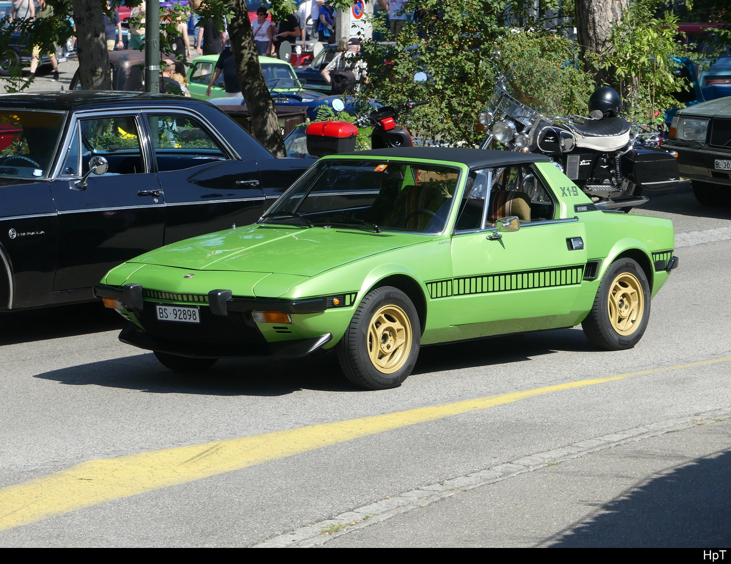 Fiat X 1/9, produziert von 1972 bis 1988. Das Modell X 1/9 basierte auf der Plattform des Fiat 128, war aber mit einem Mittelmotor bestückt. Hier wurde ein X 1/9 der ersten, auch A Serie genannt, abgelichtet. Der quer eingebaute Vierzylinderreihenmotor hat einen Hubraum von 1290 cm³ und leistete in den Jahren von 1972 bis 1974 75 PS. In den Jahren von 1974 bis 1978 noch 73 PS. Oldtimertreffen am Cafe del Sol in Gelsenkirchen am 12.10.2025. Michael H.