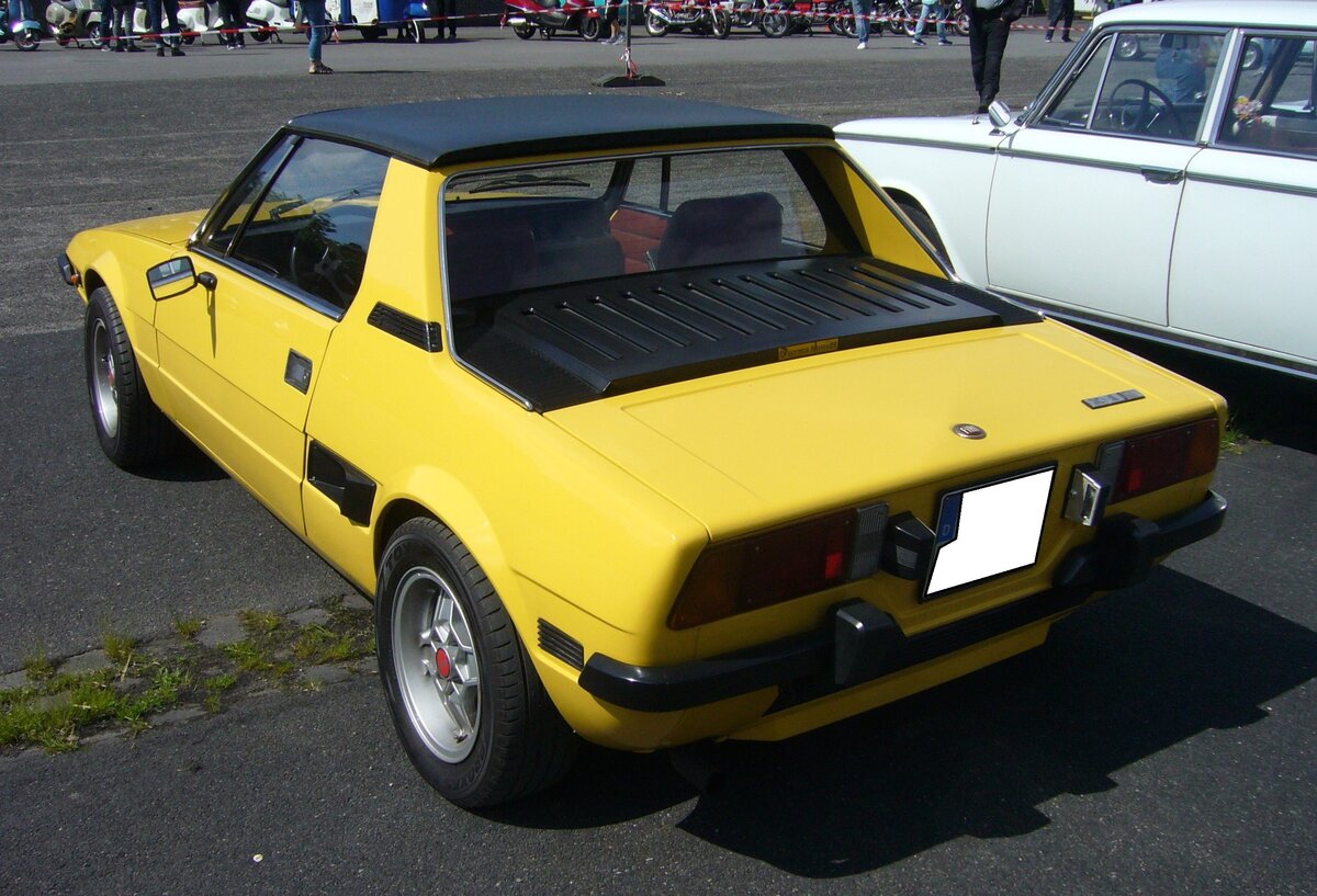 Heckansicht eines "frühen" Fiat X1/9. "Forza Italia" = Oldtimertreffen für italienische Fahrzeuge am 30.05.2024 an Mo´s Bikertreff in Krefeld.