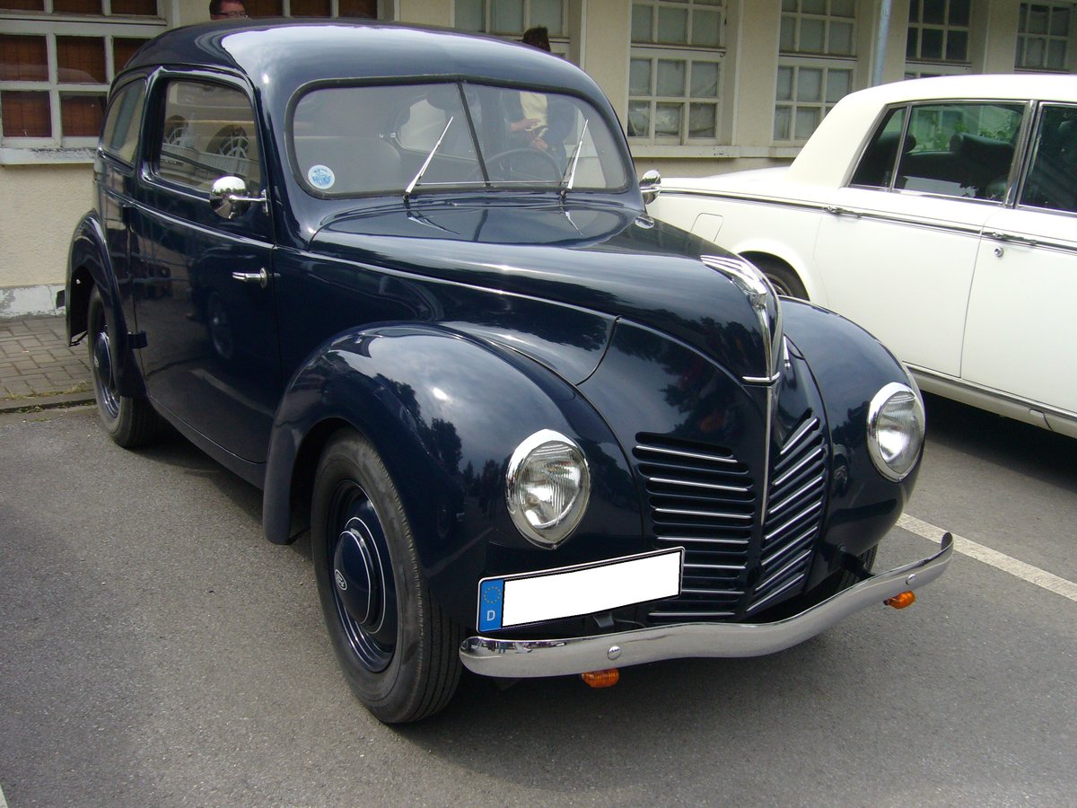 Ford Taunus G73A. 1939 - 1941. Hier wurde ein Vorkriegsmodell des "Buckeltaunus" abgelichtet. Die Technik stammte vom 1935 vorgestellte Ford Eifel, während die Karosserie zeitgenössische amerikanische Akzente aufwies. Erst nach dem Krieg kam dieses Modell richtig zum Zuge. Der 4-Zylinderreihenmotor leistet 34 PS aus 1172 cm³ Hubraum. Oldtimertreffen an der Krefelder Pferderennbahn am 12.06.2016.