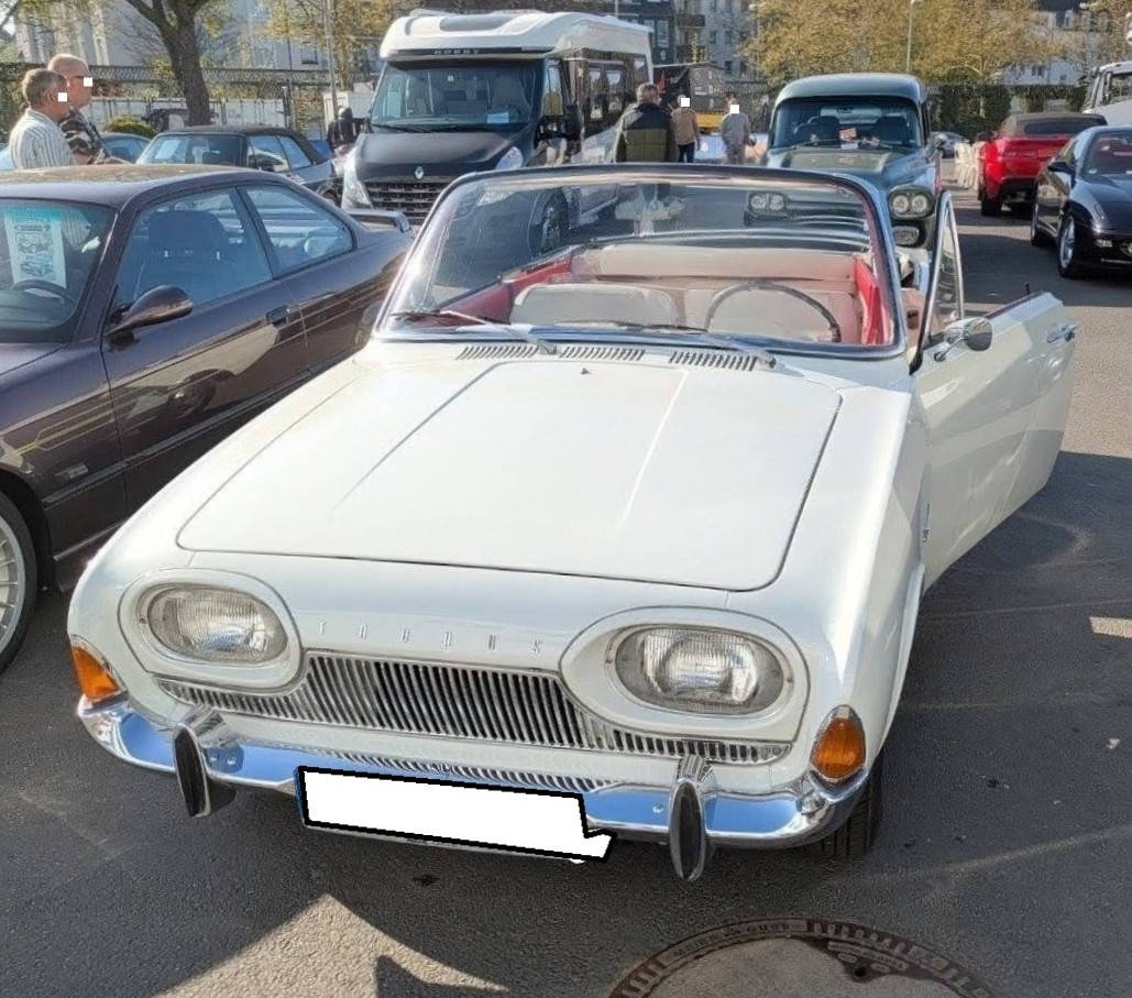 Ford Taunus 17M P3 Badewanne, gesehen am 1. Mai 2025 auf der Zufahrt zum Oldtimer Frühlingserwachen beim Sportpark Loherhof Geilenkirchen
