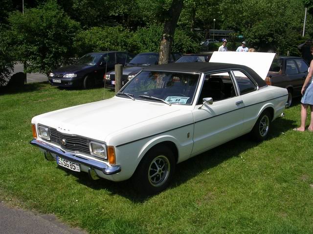 Ford Taunus TC Coupe 2.0 in der sportlichen GT-Ausstattung, gebaut von 1970 bis 1975. Das Coupe wurde 1973 erstmalig zugelassen. Unter der Motorhaube mit der  Knudsen-Nase  verrichtet ein V6-Motor seinen Dienst, der aus einem Hubraum von 1998 cm³ 90 PS leistet. Die Höchstgeschwindigkeit gaben die Kölner mit 163 km/h an. 11. Oldtimertreffen des AMC Duisburg auf dem Parkplatz des Landschaftspark Duisburg Nord am 24.08.2025.