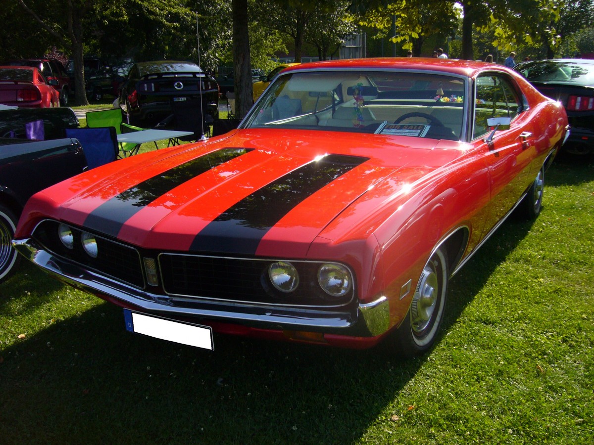 Ford Torino Coupe des Jahrganges 1971. Bei den Modelljahren 1970 - 1971 spricht man auch vom Torino der zweiten Serie. Als Motorisierung konnte man einen 145 PS starken 6-Zylinderreihenmotor oder eine V8-motor mit 210 PS wählen. US-cartreffen Centro Oberhausen am 19.07.2014.