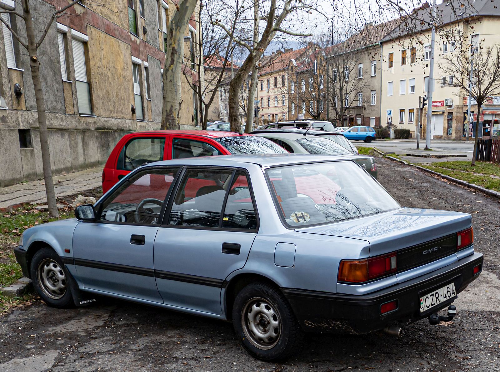 Rückansicht / Seiteansicht: Honda CIvic Mk4 Stufenheck. Foto: Januar 2023.