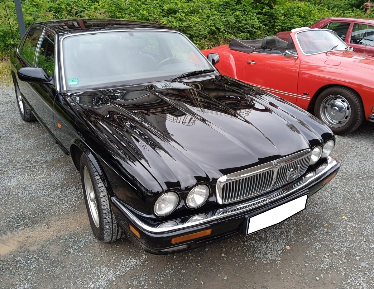 Jaguar XJ SC V12 Convertible aus dem Jahr 1987. Von diesem Modell, im klassischen Farbton british racing green, wurden lediglich 1500 Fahrzeuge (alle Motorvarianten zusammen genommen) hergestellt. Bei dem gezeigten "XJ SC" handelt es sich wohl um einen US-Reimport, was man ganz gut an den seitlichen Begrenzungsleuchten erkennen kann. Für Vortrieb sorgt in diesem Auto ein V12-Motor mit einem Hubraum von 5307 cm³ und einer Leistung von 295 PS. Classic Remise Düsseldorf am 03.10.2025. Michael H.