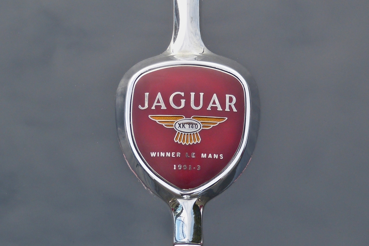 Typenschild auf der Heckklappe des Jaguar XK 140 DHC SE. 01.10.2021