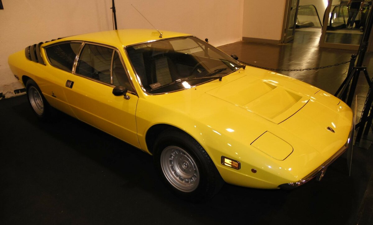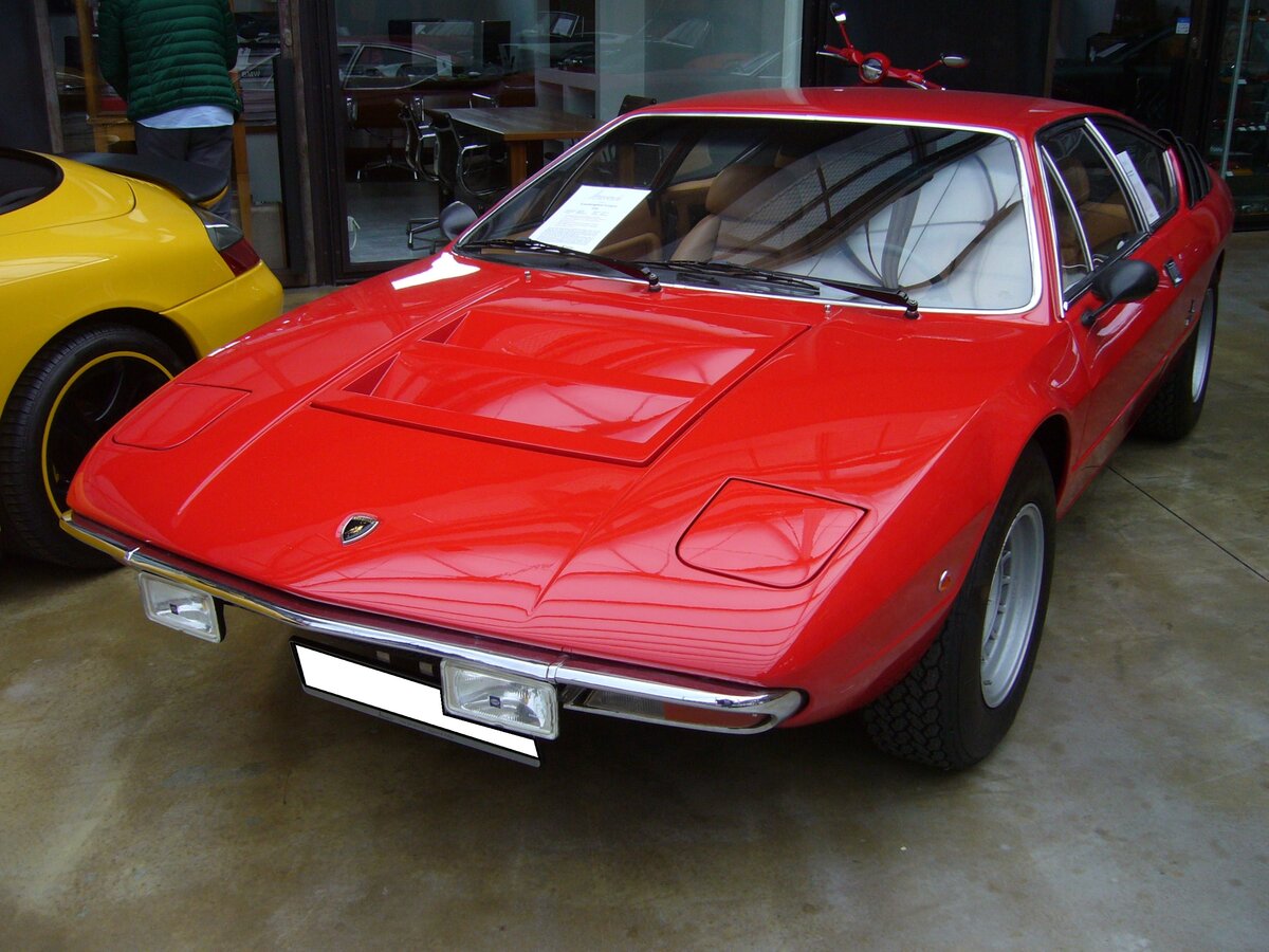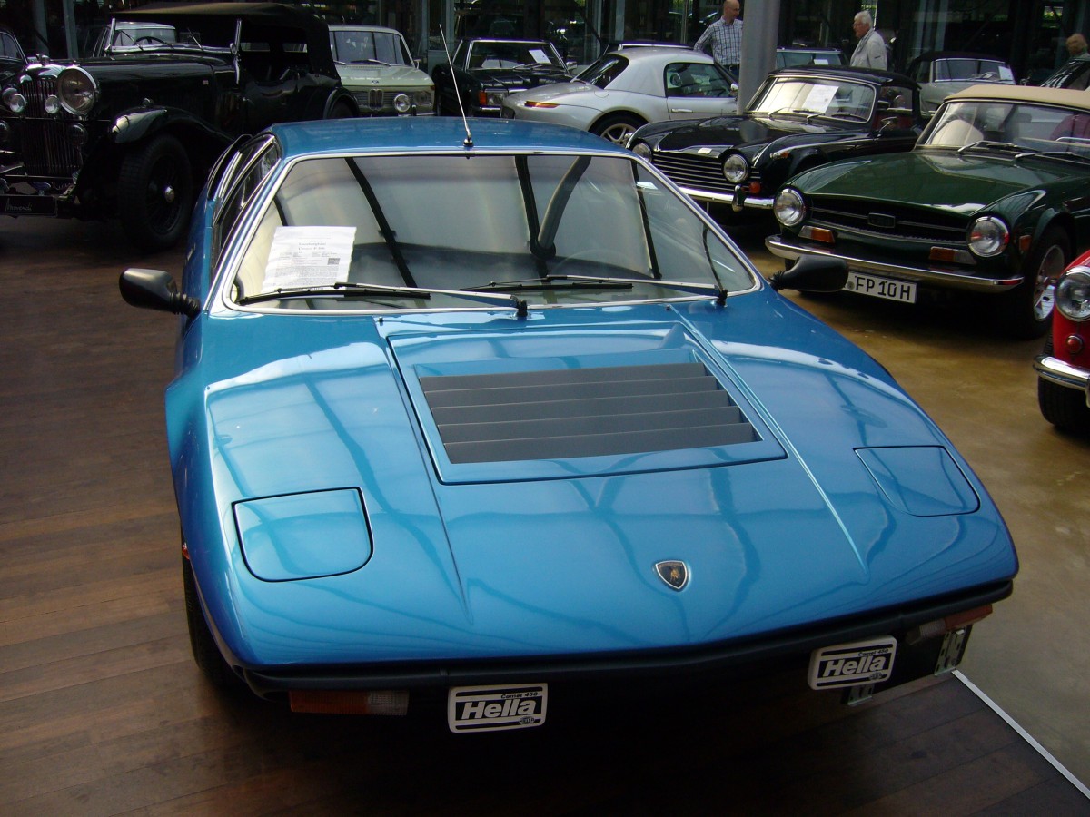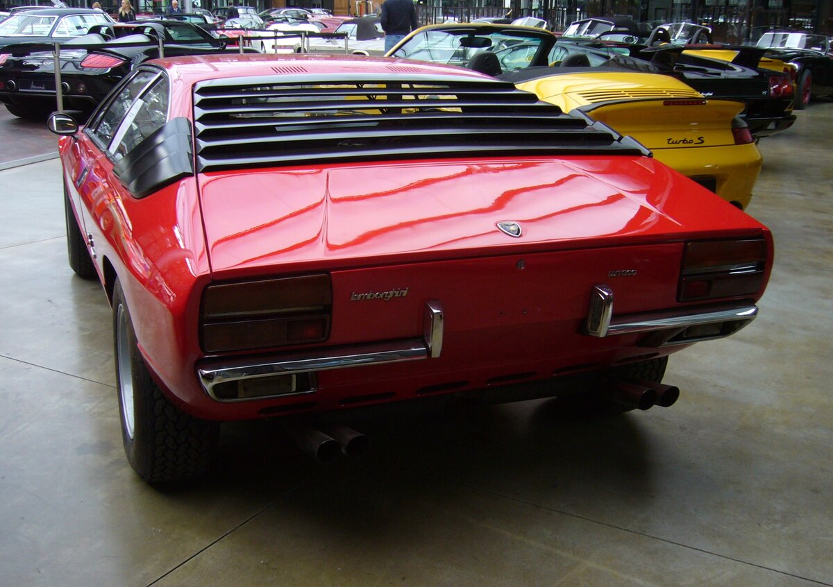 Heckansicht eines Lamborghini Urraco LP250 aus dem Modelljahr 1974. Classic Remise Düsseldorf am 26.05.2022.