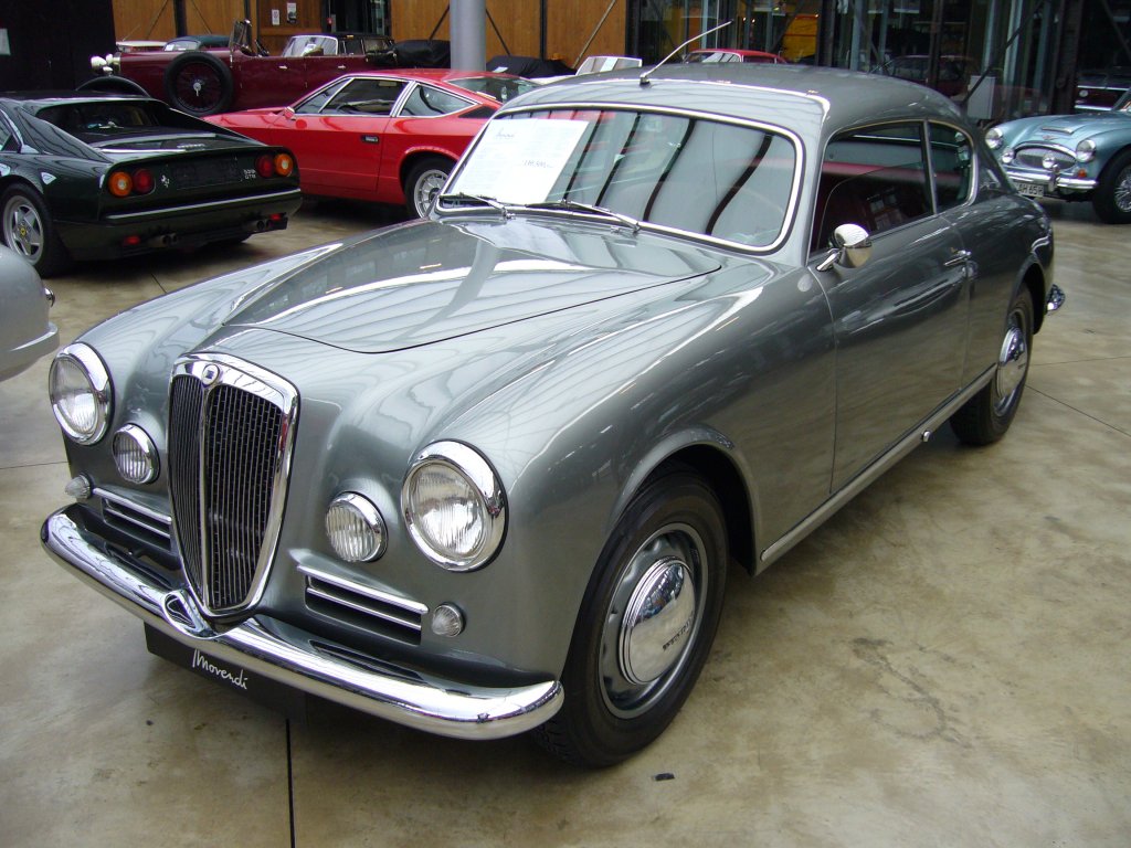 Lancia Aurelia GT B 20S Serie IV von 1954. Das von Pininfarina gezeichnete Coupe wurde von 1951 - 1958 in insgesamt 6 Serien produziert. Ab 1953 (dritte Serie,) wurde ein V6-motor mit 2.451 cm³ verbaut, der ca. 120 PS leistet. Classi Remise Düsseldorf am 11.03.2012.