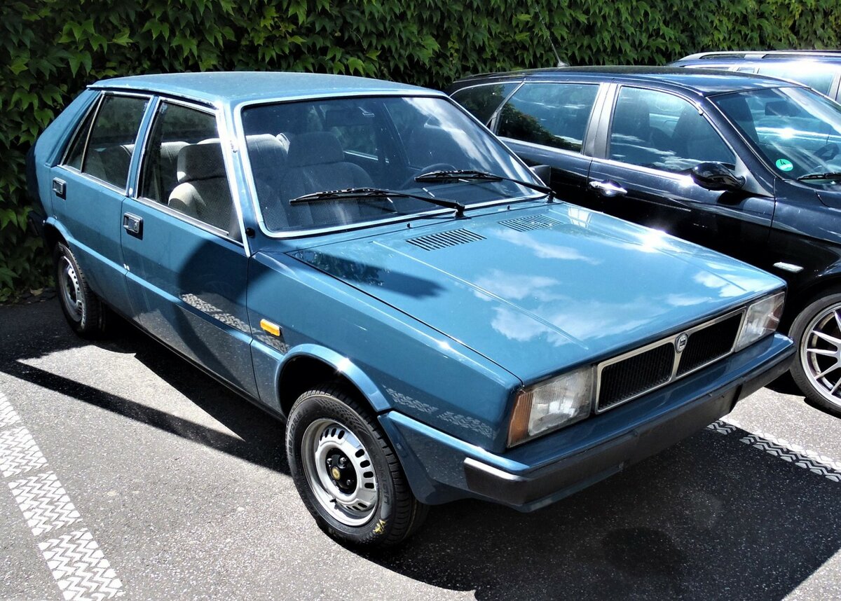 Lancia Delta der Modellreihe Tipo 831. Der Delta wurde auf der Frankfurter IAA des Jahres 1979 vorgestellt. Internationale Motorjournalisten wählten den Delta sogar zum Auto des Jahres 1980. Viele Technikelemente, wie zum Beispiel das Chassis, stammten vom Fiat Ritmo. Der frühe Delta (siehe Foto) war mit zwei Vierzylinderreihenmotoren lieferbar: 1301 cm³ mit 75 PS oder 1498 cm³ mit 86 PS. Besucherparkplatz der Düsseldorfer Classic Remise am 26.05.2022.