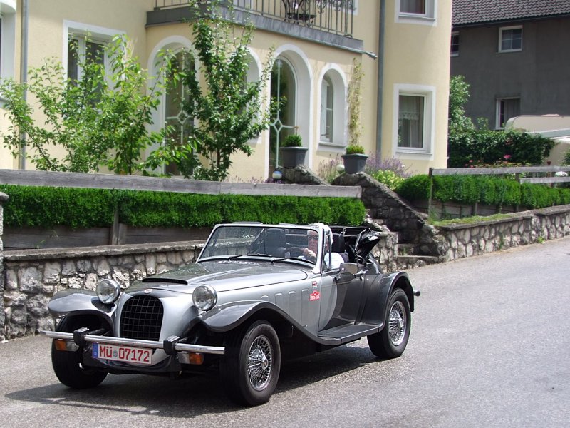Ein (unbekannter) "flotter Flitzer" aus dem benachbartem Bayern nimmt an der Oldtimerausfahrt in Neukirchen/Vöckla teil; 090706