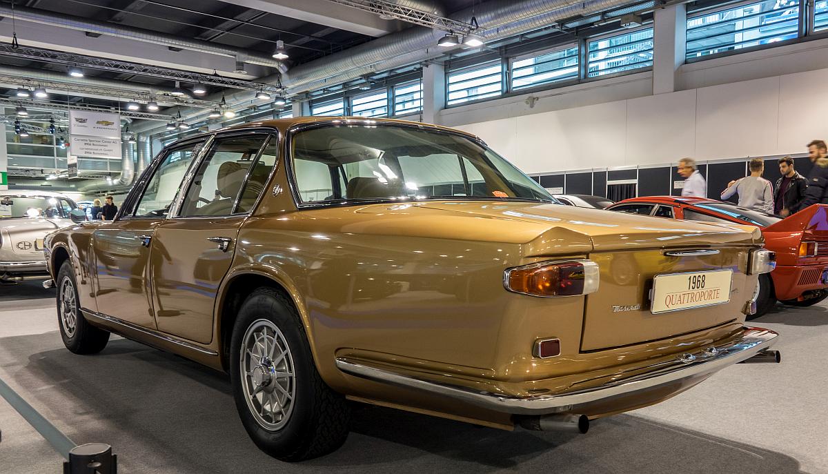 1968-er Maserati Quattroporte (Rückansicht), fotografiert auf der Auto Zürich am 09.11.2018