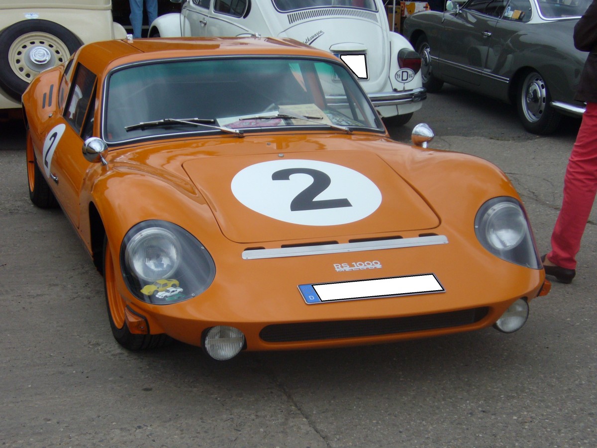 Melkus RS 1000 Sport Coupe. 1969 - 1973. Der Dresdner Fahrlehrer Heinz Melkus konstruierte dieses Modell als straßentauglichen Rennwagen. Das als Mittelmotor verbaute Aggregat stammt vom Wartburg 353. Bis 1972 wurde der 3-Zylinderzweitaktmotor mit 70 PS aus 992 cm³ verbaut. Im letzten Produktionsjahr erhöhte sich der Hubraum auf auf 1119 cm³ ohne das sich die Leistung erhöhte. Die Kunststoffkarosserien mit den Flügeltüren wurden beim VEB Robur-Werke in Zittau/Sachsen gefertigt. Oldtimertreffen an der "Alten Dreherei" in Mülheim an der Ruhr am 20.06.2015.