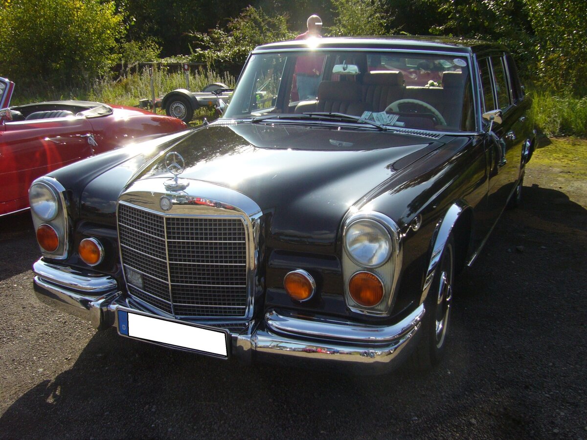 Mercedes Benz W100, auch 600´er genannt, produziert in Handarbeit von 1964 bis 1981. Hier wurde einer von den 2.190 gebauten "kurzen" 600´ern abgelichtet. Der V8-Motor wird über eine Achtstempel-Bosch-Einspritzpumpe mit Kraftstoff versorgt und hat einen Hubraum von 6330 cm³. Mit seinen 250 PS erreicht der 2600 Kilogramm schwere 600´er eine Höchstgeschwindigkeit von 207 km/h. 10. Oldtimertreffen des AMC Duisburg am 25.08.2024 am LaPaDu Duisburg.