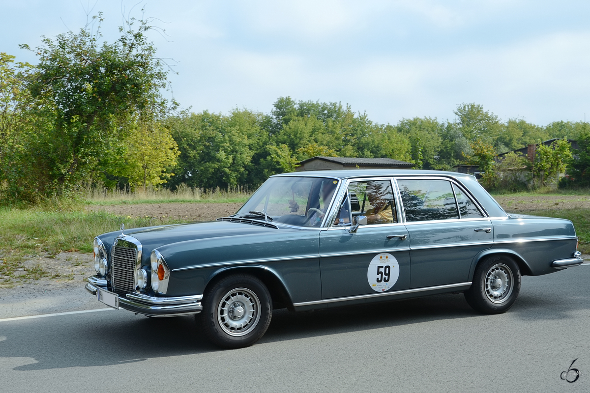 Ein Mercedes-Benz 300SEL als Teilnehmer der ADAC Sunflower Rallye im August 2012.
