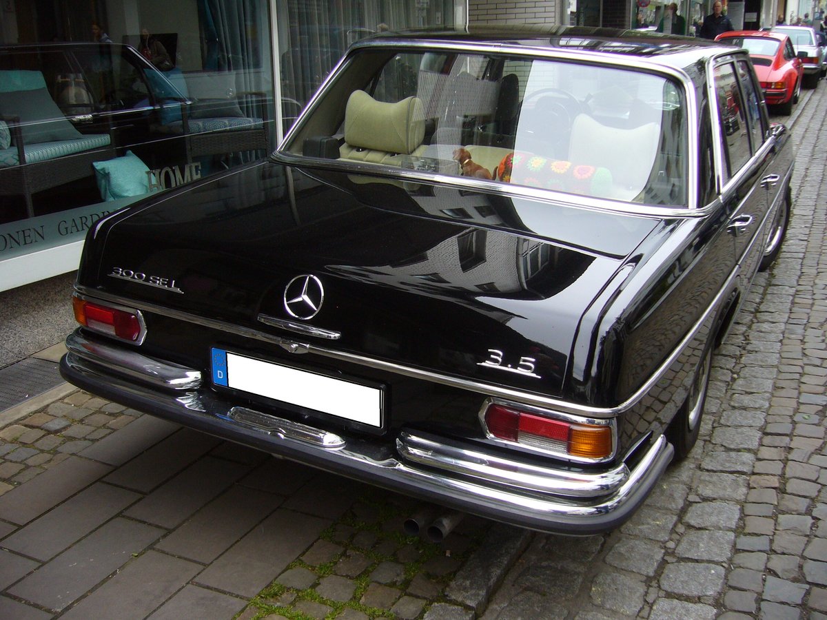Heckansicht eines Mercedes Benz W109 300SEL 3.5. 1969 - 1972. Oldtimertreffen Essen-Kettwig am 01.05.2018.