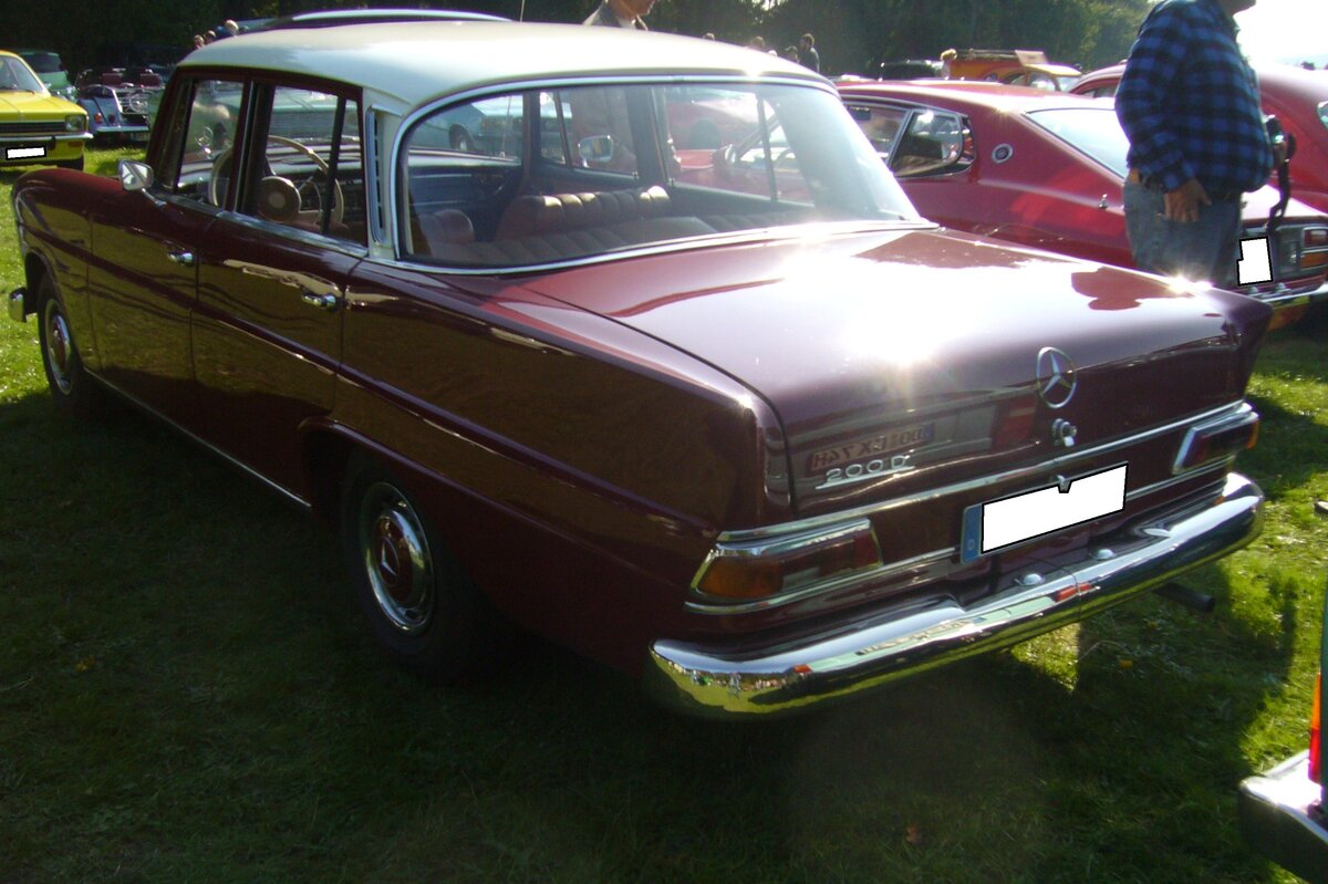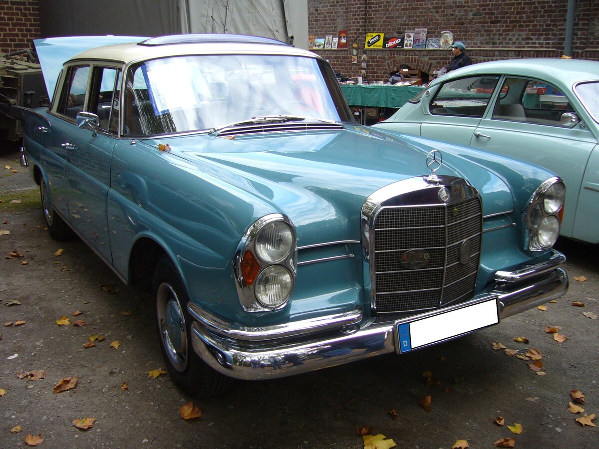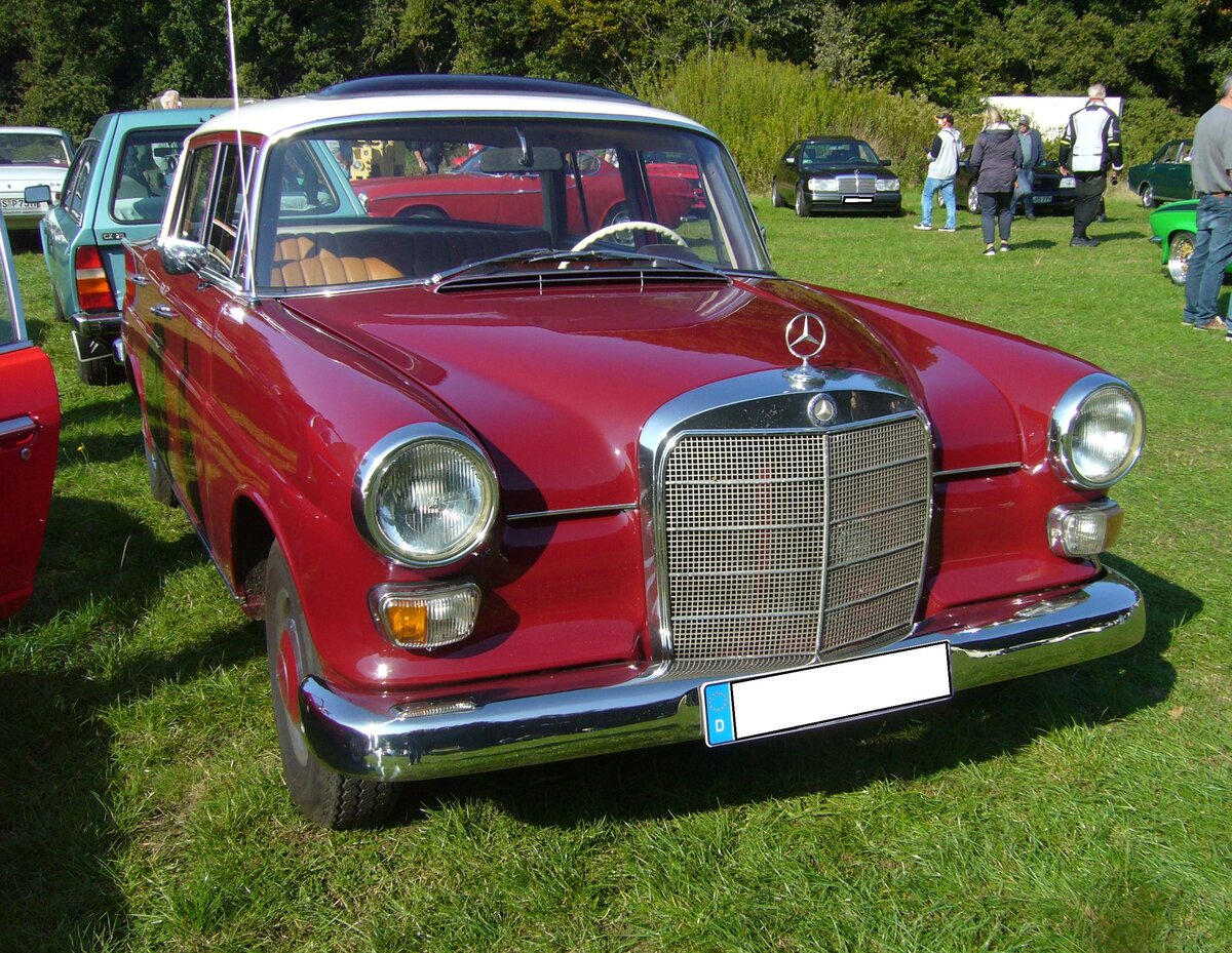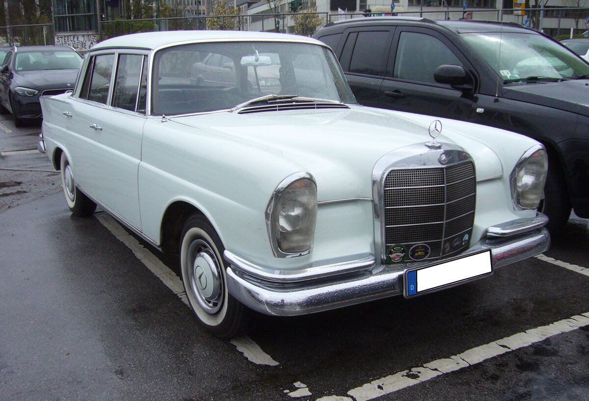 Mercedes Benz W111/2 220SEb Automatic aus dem Jahr 1962, genannt die "große Heckflosse". Produziert wurde das Modell von von 1959 bis 1965. Für dieses Fahrzeug der automobilen Oberklasse, musste man bei seiner Markteinführung mindestens DM 13.250,00 auf die Theke des Mercedes Benz Vertragspartners legen. Der Sechszylinderreihenmotor leistet 95 PS aus einem Hubraum von 2195 cm³. Besucherparkplatz der Techno Classica Essen am 03.04.2024.