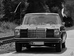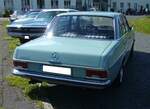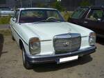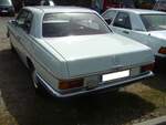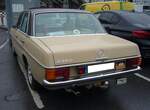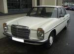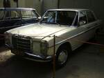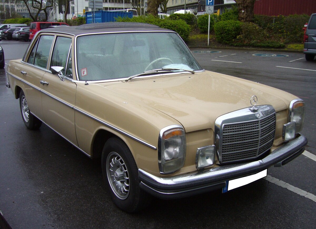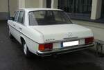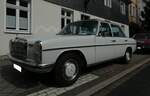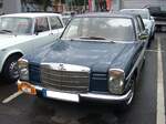 Mercedes Benz W114 V23 Limousine auch 230/6 genannt, gebaut in den Jahren von 1968 bis 1976. Die Modelle 230.6 waren die Modelle mit dem kleinsten Sechszylinderreihenmotor der sogenannten Strich/8 Baureihe. Eine solche Limousine kostete bei seiner Markteinführung mindestens DM 16.765,00 in der Grundausstattung. Der Motor leistet 120 PS aus einem Hubraum von 2292 cm³. Der Verbrauch wurde von Mercedes Benz mit ca. 15 Litern Super pro 100 Kilometer angegeben. Besucherparkplatz der Techno Classica Essen am 03.04.2024.