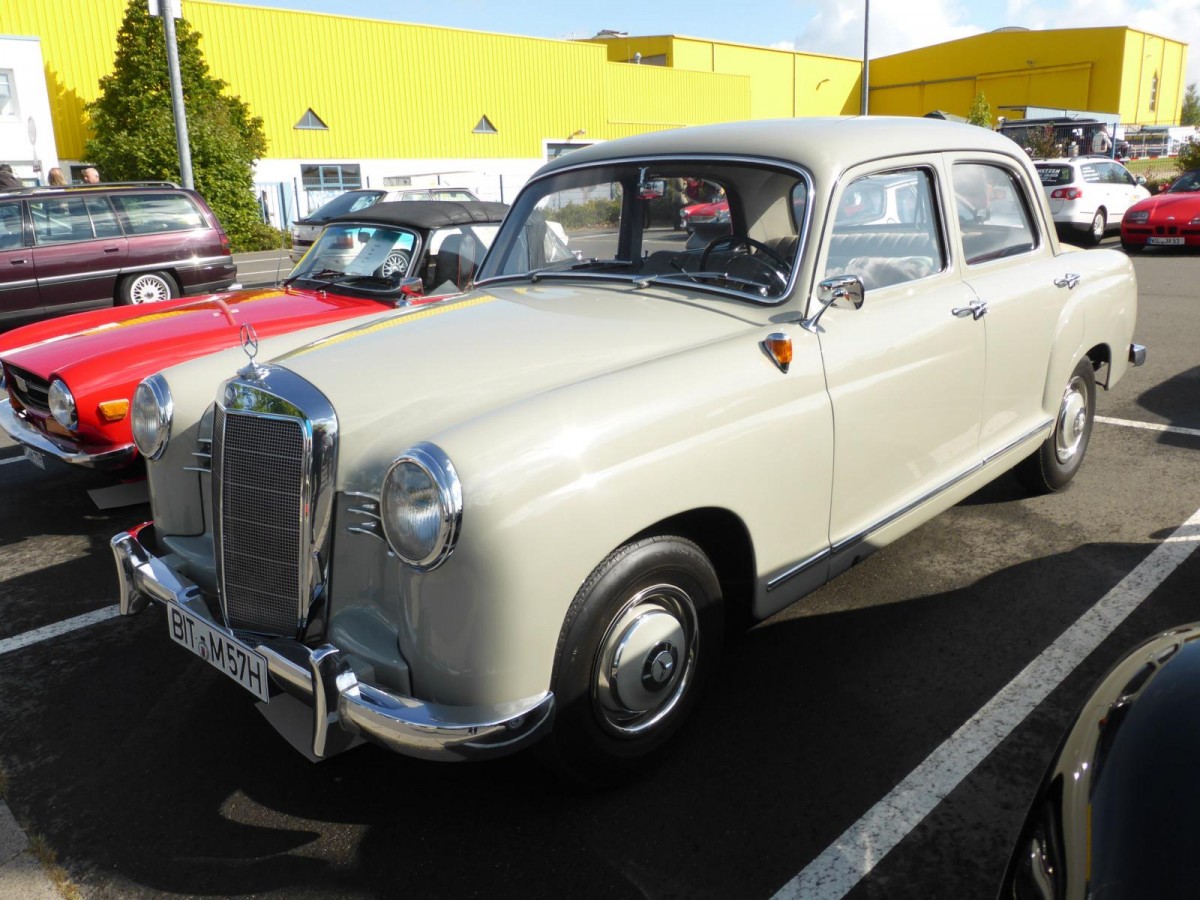 Mercedes Benz W180 II 220S Limousine. Die Baureihe W180 wurde im Jahr 1954 vorgestellt. Von der Optik her ähnelte dieses Modell dem ein Jahr früher vorgestellten W120. Von 1954 bis 1956 wurde der 220 produziert. Ab März 1956 wurde dann der W180-2, besser bekannt als 220S gebaut. Der W180-2 war äußerlich an hübscheren Chromverzierungen zu erkennen. Insgesamt verließen 55.279 Fahrzeuge dieses Typs die Werkshallen von Mercedes Benz. Der Grundpreis für ein solches Modell betrug DM 12.500,00. Der Sechszylinderreihenmotor hat einen Hubraum von 2195 cm³ und leistete bis zum Juli 1957 100 PS. Danach erhöhte sich die Leistung auf 106 PS. Essen Motor Show am 28.11.2025. Michael H.