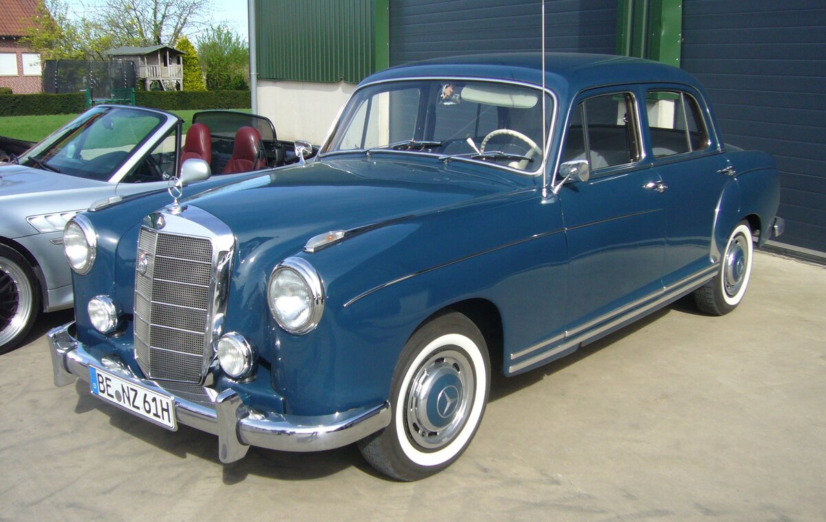 Mercedes Benz W180 II 220S Limousine. Die Baureihe W180 wurde im Jahr 1954 vorgestellt. Von der Optik her ähnelte dieses Modell dem ein Jahr früher vorgestellten W120 (Ponton). Von 1954 bis 1956 wurde der 220 produziert. Ab März 1956 wurde dann der W180 II, besser bekannt als 220S gebaut. Der W180 II war äußerlich an hübscheren Chromverzierungen zu erkennen. Insgesamt verließen 55.279 Fahrzeuge dieses Typs die Werkshallen von Mercedes Benz. Der Grundpreis für ein solches Modell betrug DM 12.500,00. Der Sechszylinderreihenmotor hat einen Hubraum von 2195 cm³ und leistete bis zum Juli 1957 100 PS. Danach erhöhte sich die Leistung auf 106 PS. Ich habe hier ausnahmsweise das Nummernschild nicht unkenntlich gemacht, da ich das Kennzeichen total witzig und passend für diesen Wagen finde. Oldtimertreffen beim Autohaus Voss in Rosendahl-Darfeld am 07.04.2024.
