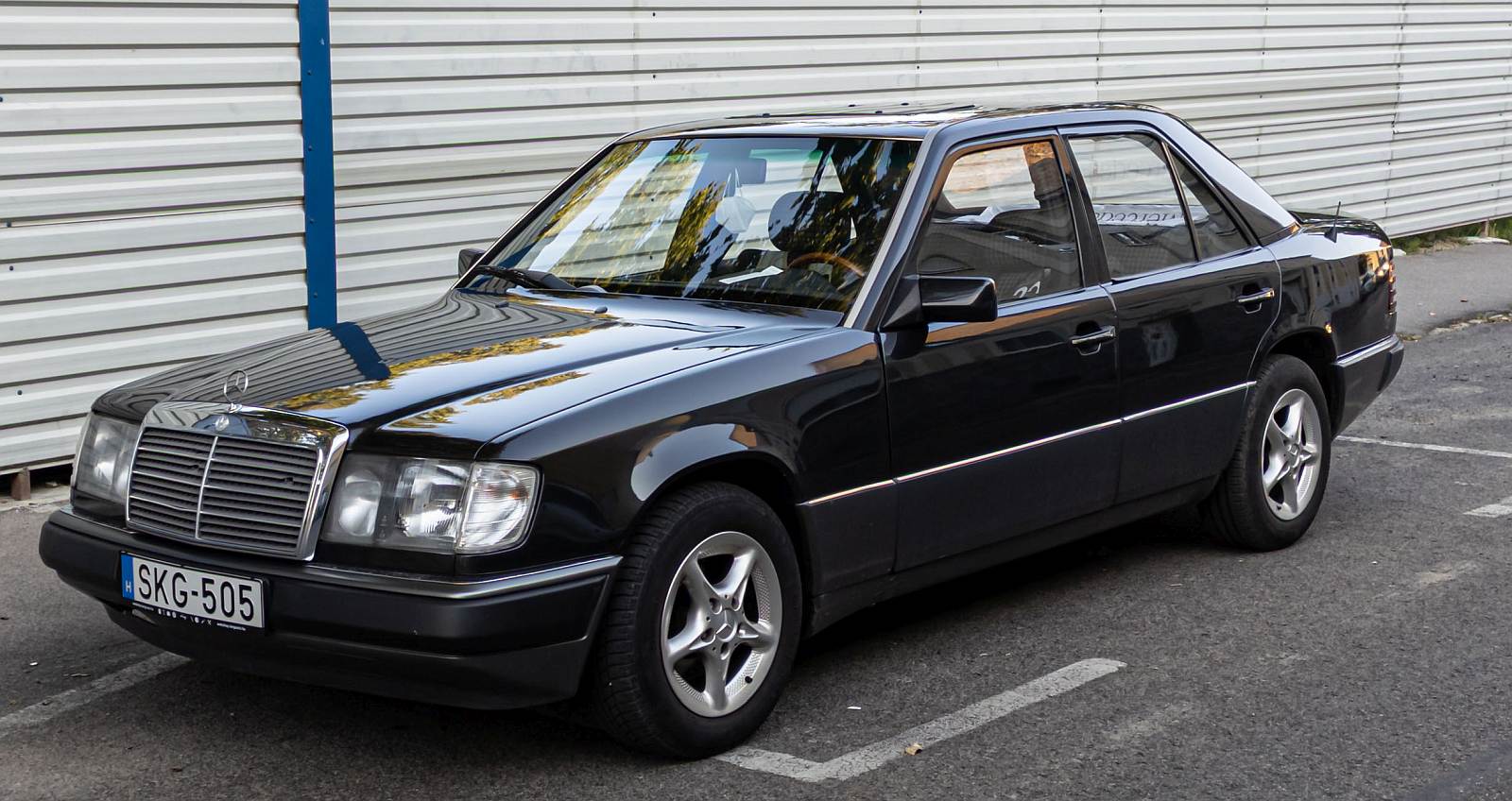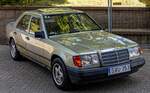 Hier ist ein Mercedes-Benz E-Klasse W124 in schönem Zustand zu sehen. Foto: Juli, 2023.