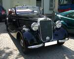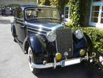 Mercedes Benz W136 IV 170S Limousine, gebaut von 1949 bis 1952. Als Symbol des angehenden Wirtschaftswunders erschien im Mai 1949 der Mercedes Benz 170S. Er war nicht viel größer als der Mercedes 170V, aber wesentlich komfortabler und repräsentativer. Für eine solche Limousine musste man mindestens DM 10.100,00 anlegen. Der Vierzylinderreihenmotor leistet 52 PS aus einem Hubraum von 1767 cm³. Oldtimertreffen an der Bleibergquelle Velbert am 22.09.2024.