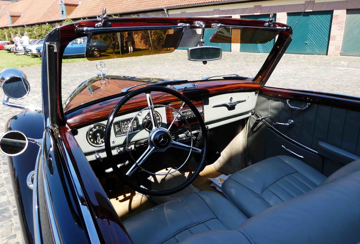 =MB 220-Innenraum, gesehen bei Blech & Barock im Juli 2018 auf dem Gelände von Schloß Fasanerie bei Eichenzell