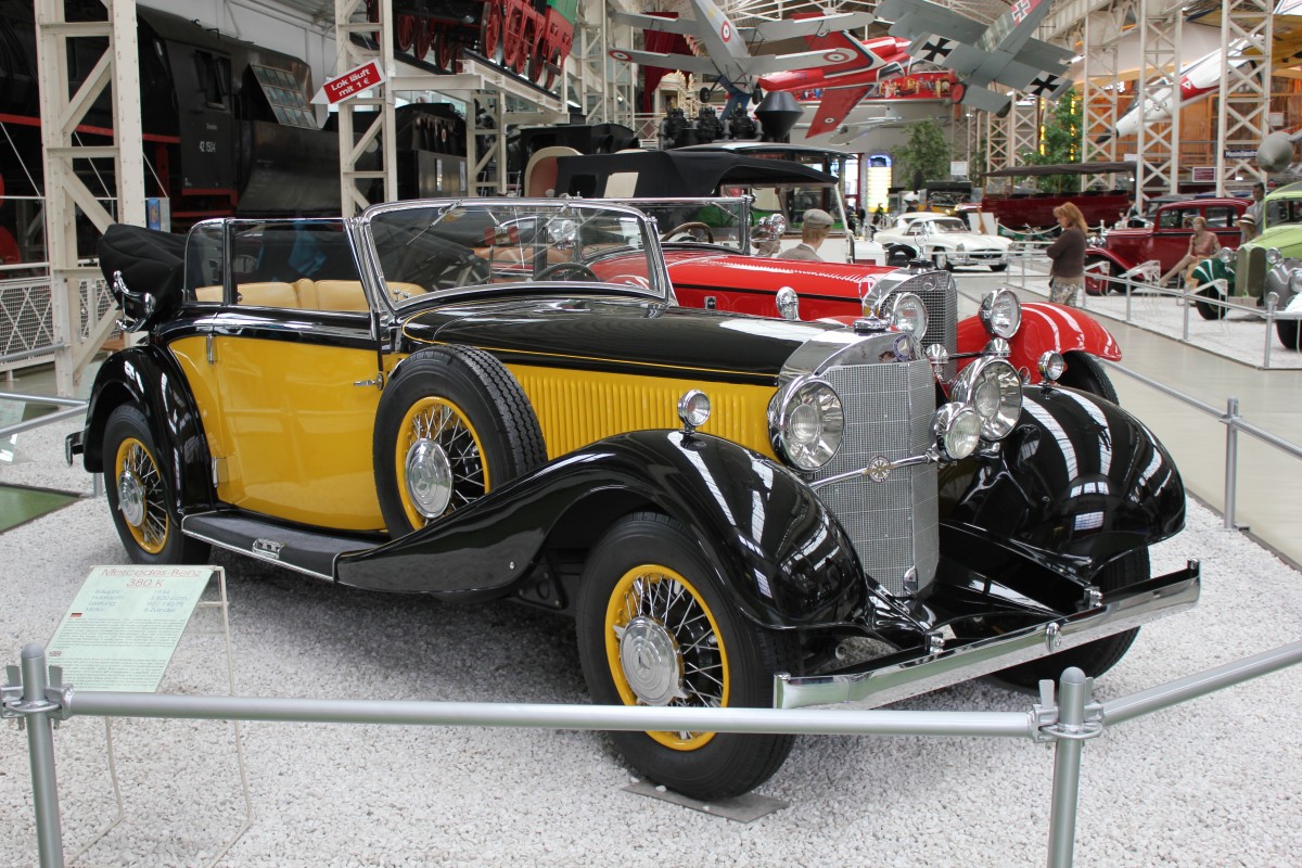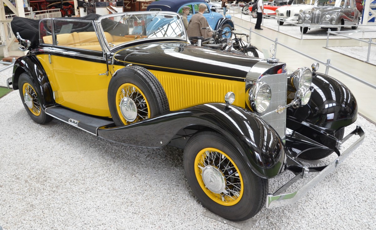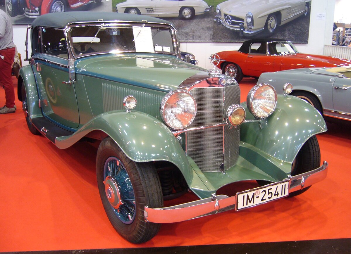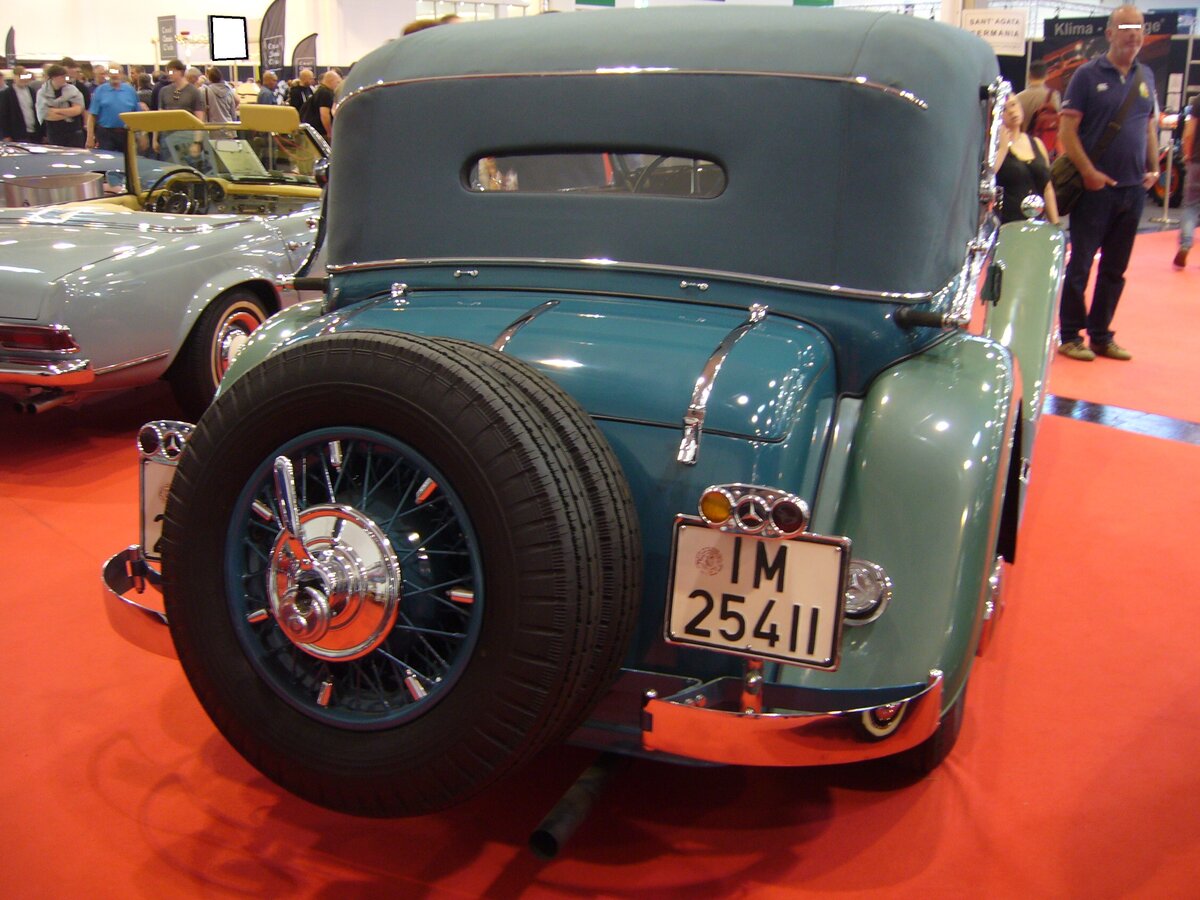 Mercedes Benz W22 380K Kompressor aus dem Jahr 1934. Die Baureihe W22 wurde nur in den Jahren 1933 und 1934 gefertigt und war in etlichen Karosserieversionen lieferbar. Hier konnte ich ein Cabriolet C ablichten. Wie an dem K in der Typenbezeichnung zu erkennen ist, handelt es sich hier um ein Fahrzeug mit einem eingebauten Kompressor. Bei den Kompressor-Modellen gab es allerdings zwei Versionen. Hier ist nicht ersichtlich um welche der beiden Versionen es sich handelt. Beide Modelle haben einen Achtzylinderreihenmotor mit einem Hubraum von 3823 cm³. Version 1 hat einen angebauten Kompressor und leistet normal 90 PS. Wird der Kompressor zugeschaltet, erhöht sich die Leistung auf 120 PS. Version 2 hat einen integrierten Kompressor mit einer normalen Leistung von 90 PS. Wird hier der Kompressor zugeschaltet, erhöht sich dies sogar auf 140 PS. Der Verbrauch von 23 Litern Benzin auf 100 Kilometern war bei beiden Varianten gleich. Gemäß dem Kennzeichen mit der Buchstabenkennung IM müsste der Wagen in der damaligen Provinz Sachsen zugelassen gewesen sein. Techno Classica Essen am 06.04.2024. Michael H.