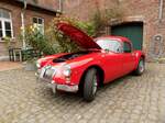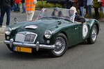 Der MG A kam 1955 auf den Markt und war als Roadster und geschlossenes Coupe lieferbar. Von den über 101.000 hergestellten Autos vom Typ MG A waren ca. 91% Roadster und nur 9% Coupes. Der gezeigte MG A 1600 MK2 kam 1961 auf den Markt. Er war optisch durch einen leicht geänderten Kühlergrill und die Heckleuchten des Morris Mini, die horizontal unterhalb der Kofferraumhaube verbaut waren, zu erkennen. Der Vierzylinderreihenmotor war in der MK2-Version nochmals auf einen Hubraum von 1622 cm³ aufgebohrt worden. und leistete nun 94 PS. Oldtimer-Revival auf dem Gelände der Kokerei Zollverein in Essen am 28.07.2024.