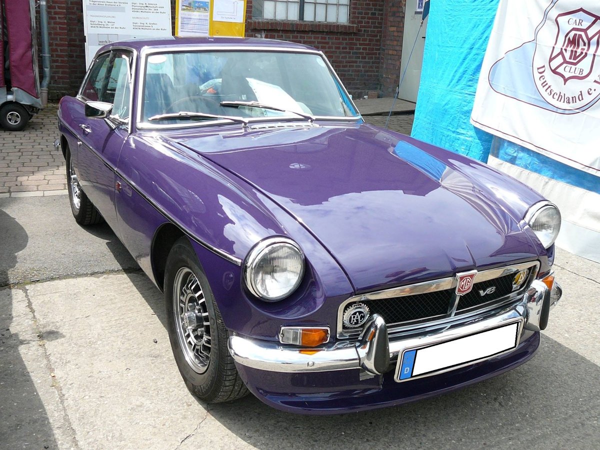 MG B GT V8, wie er von 1973 bis 1976 im Verkaufsprogramm von MG war. Basis dieses Sportcoupes war der bereits 1962 vorgestellte MG B Roadster. Der MG B Roadster wurde bis 1980 produziert. Ab 1965 ergänzte MG das Modellprogramm mit einem Schrägheckcoupe namens MG B GT. Im Jahr 1973 wurde dieses Coupe um den den B GT v8 ergänzt. Als Motorisierung diente diesem Fahrzeug der kleine V8-Motor aus dem Buick F-85. Dieser "Achtender" hat einen Hubraum von 3528 cm³ und leistet ca. 140 PS. Treffen des MG-Owners-Club Deutschland an der "Alten Dreherei" in Mülheim an der Ruhr im Juni 2015.