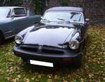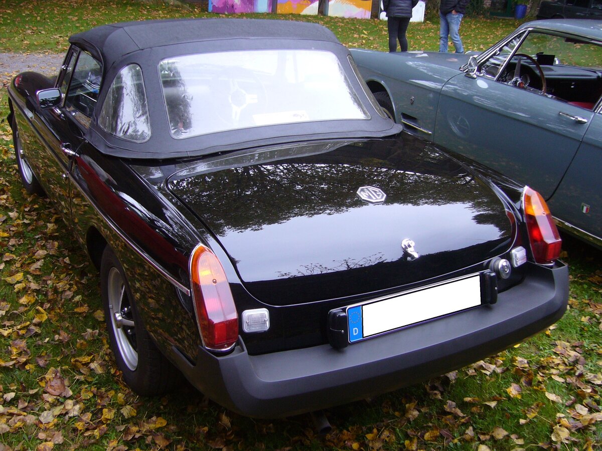 Heckansicht eines MG B Roadster aus dem Jahr 1978. Oldtimertreffen beim Theater an der Niebu(h)rg am 20.10.2024 in Oberhausen/Rhld.