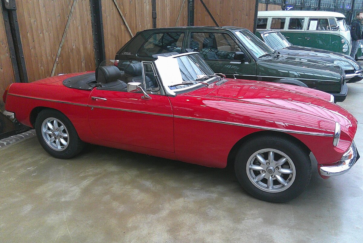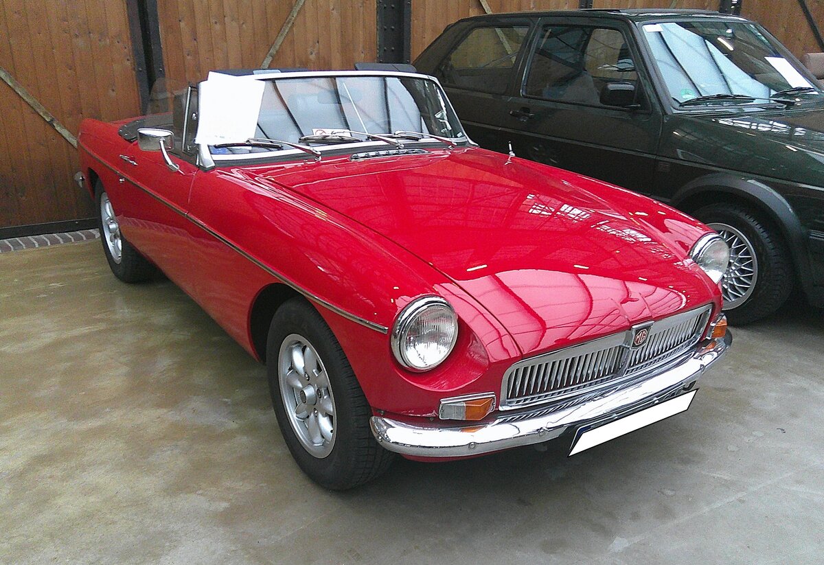MG B im Farbton snapdragon yellow aus der Bauzeit von 1974 bis 1980. Der MG B wurde bereits 1962 vorgestellt und bis 1980 produziert. Aufgrund veränderter Zulassungsbestimmungen in das Hauptexportland USA, wurde das Auto ab jenem Modelljahr um 2,5 cm höher gelegt und erhielt die sogenannten "Gummiboot-Stoßstangen". Nichts desto trotz war der MG B einer der erfolgreichsten Roadster der Automobilgeschichte. Der Vierzylinderreihenmotor leistet 95 PS aus einem Hubraum von 1798 cm³. British Car and Motorcycle Meeting am 20.07.2025 an Mo´s Bikertreff in Krefeld.