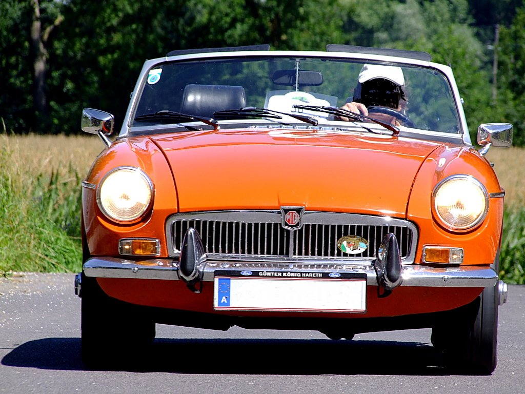 MG-B; Baujahr 1973 tourt von einer zur anderen Oldtimerveranstaltung;110714