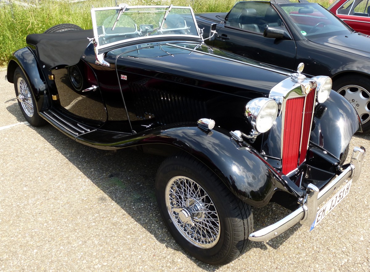 Profilansicht eines MG TC aus dem Jahr 1948. Oldtimertreffen an der  Alten Dreherei  in Mülheim an der Ruhr am 21.06.2025.