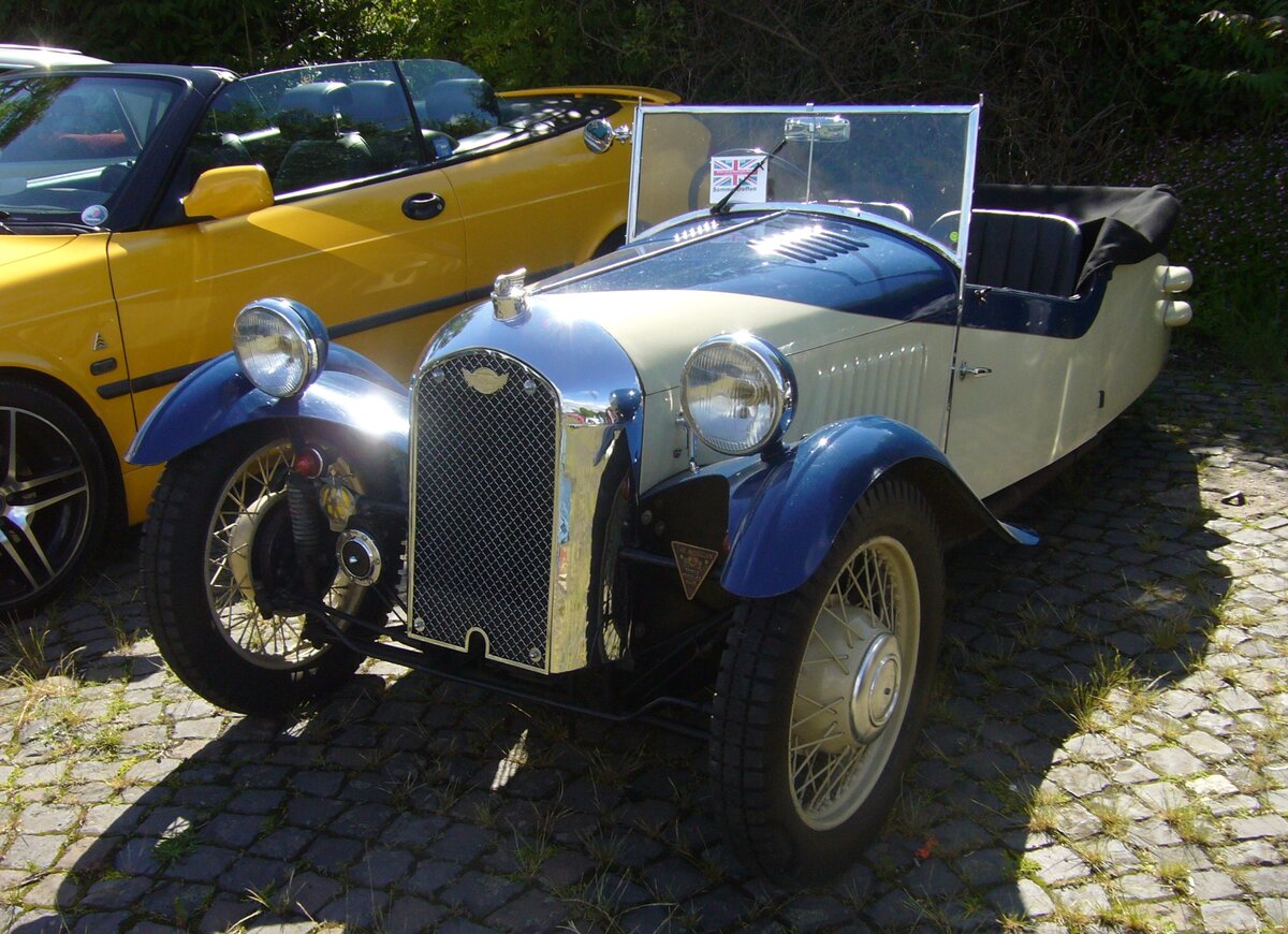 Morgan Threewheeler Modell F, gebaut in Malvern Link in den Jahren 1947 und 1948. Die nur zwei Jahre produzierte F-Reihe war mit einem Vierzylinderreihenmotor ausgestattet, der aus einem Hubraum von 316 cm³ 40 PS leistet. Oldtimertreffen Flughafen Essen/Mülheim am 06.06.2022.