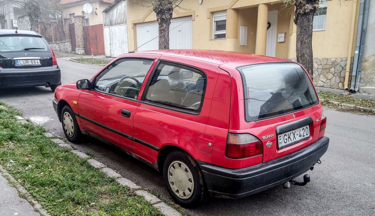 Rückansicht: Nissan Sunny N14 dreitürer. Foto: Dez. 2020.