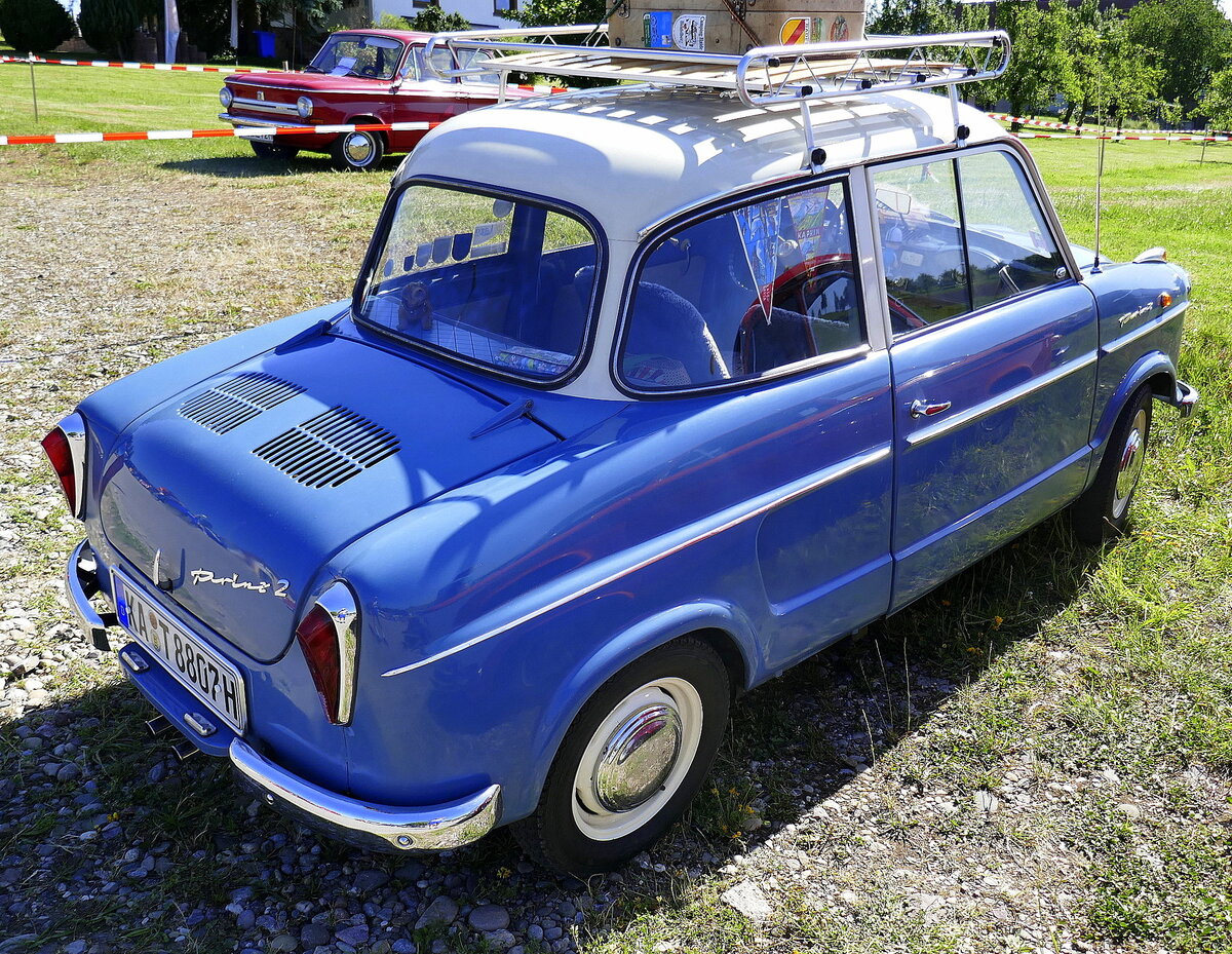 =NSU Prinz II, Bj. 1959, 579 ccm, 20 PS, steht auf einer Ausstellungsfläche für Oldtimerfahrzeuge beim Bürgerfest "200 Jahre Landkreis Fulda" auf dem Gelände von Schloß Fasanerie im Juni 2022.