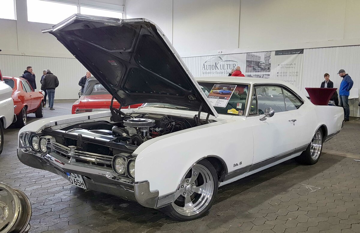 =Oldsmobile Delta 22 2 Door Holiday Coupe,, Bj. 1966, 7000 ccm, 350 PS, steht in der Ausstellungshalle der Technorama 2023 in Kassel