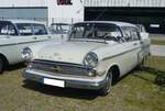 Opel Admiral B im Farbton polarweiß, gebaut von 1969 bis 1977. Die KAD-Baureihe (K apitän, A dmiral, D iplomat) stand ab März 1969 bei den Opel Händlern. Der Kapitän wurde bereits im Mai 1970 wieder eingestellt. Ab diesem Zeitpunkt war der Admiral das Basismodell dieser Baureihe. Ein solcher Admiral war bei seiner Markteinführung ab DM 14.720,00 zu haben. Der Sechszylinderreihenmotor hat einen Hubraum von 2874 cm³ und leistet 145 PS. "Zaungast" beim Panoramatreffen der Alt-Opel IG in Essen Werden am 10.08.2024.