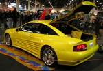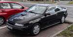 Opel Calibra im Farbton astrosilber. Auf der Basis des im Herbst 1988 eingeführten Opel Vectra A platzierten die Rüsselsheimer ab September 1989 das Sportcoupe Calibra. Der hier gezeigte Calibra müsste ab Sommer 1994 produziert worden sein, da ab dem damaligen leichten Facelift das Opel-Logo im Kühlergrill verbaut war. Standardmotorisierung war ein quer eingebauter Vierzylinderreihenmotor mit einem Hubraum von 1998 cm³ und einer Leistung von 115 PS. Die nächste Steigerungsstufe hatte den selben Motor, allerdings mit Sechszehnventiltechnik. Hier betrug die Leistung 150 PS bzw. 136 PS mit Katalysator. Wurde auf dem genannten Motor ein Turbolader verbaut waren es dann 204 PS. Krönung war der Calibra mit dem V6-Motor mit 2498 cm³ Hubraum und einer Leistung von 170 PS. Oldtimertreffen am Cafe del Sol in Gelsenkirchen am 12.10.2025. Michael H.