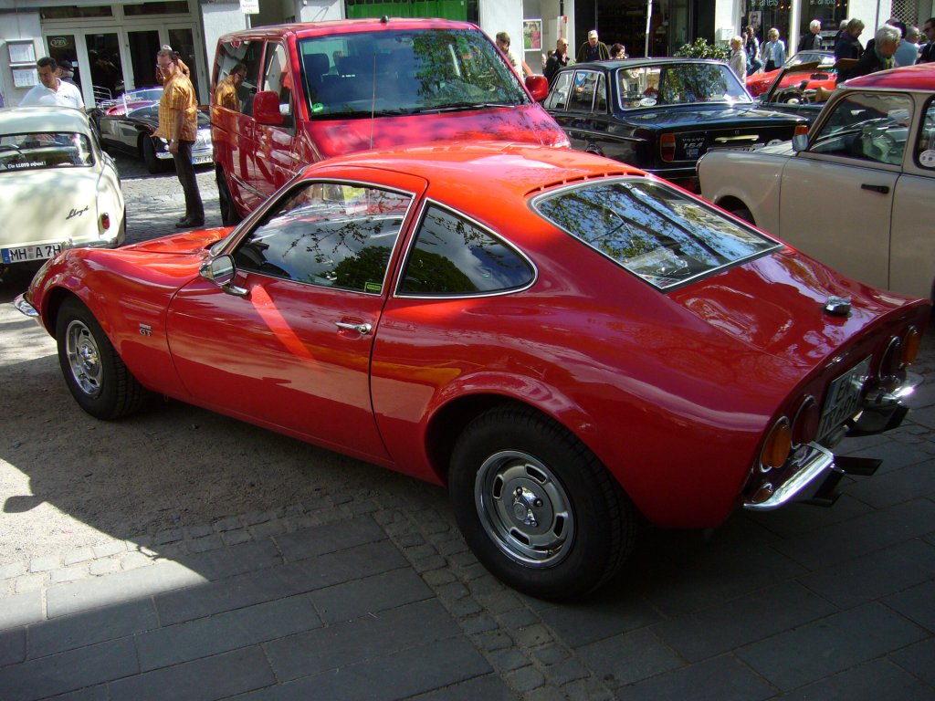 Opel GT 1900. 1968 - 1973. Ein Sportcoupe auf Basis des Kadett B. Die schnittige Karosserie wurde bei Brissoneaux & Lotz in Creil/Nordfrankreich in gefertigt. Montiert wurde der Wagen in Bochum. Insgesamt liefen 103.373 GT´s vom Band. Oldtimertreffen des AC-Kettwig.
