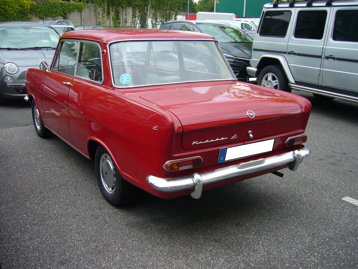 Heckansicht eines Opel Kadett A aus dem Jahr 1963. Besucherparkplatz der Düsseldorfer Classic Remise am 07.06.2021.
