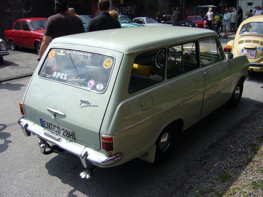 Opel Kadett A Caravan, gebaut von März 1963 bis Juli 1965. Der 943 cm³ Motor leistete wahlweise 40 oder 48 PS. Es wurden 126.616 Kadett A Caravan produziert. Oldtimertreffen Kokerei Zollverein.
