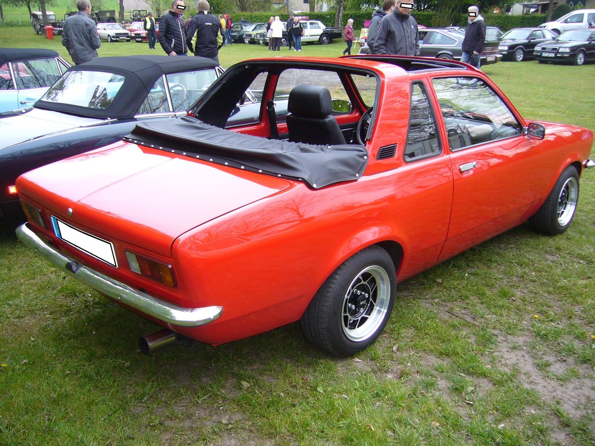 Heckansicht eines Opel Kadett C Aero. 1976 - 1978. Oldtimertreffen Hörstel-Riesenbeck am 01.05.2017.