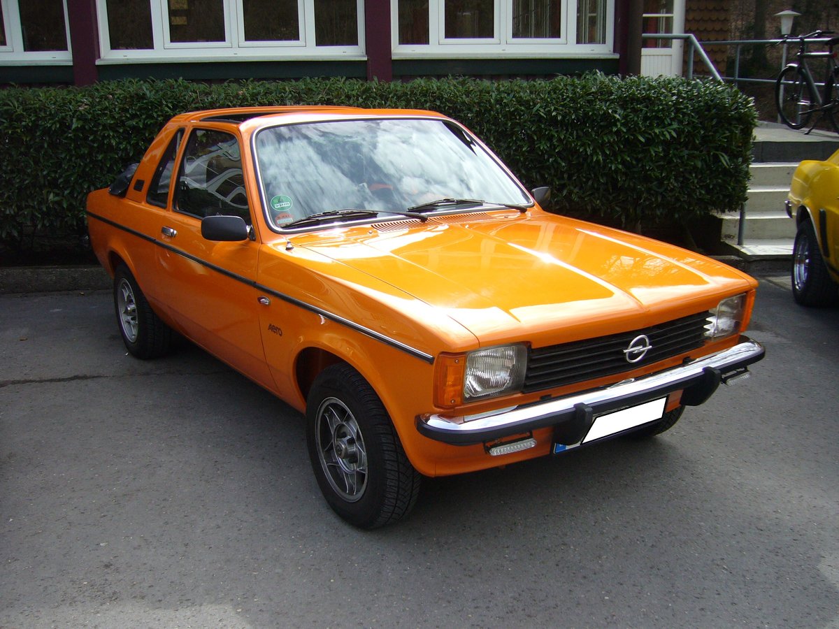 Opel Kadett C Aero. 1976 - 1978. Die zum Freiluftauto umgebaute zweitürige Limousine wurde auf dem Genfer Salon 1976 vorgestellt. Dem Fahrzeug war kein großer Verkaufserfolg vergönnt. Lediglich 1242 Aero Modelle verließen die Werkhallen der Karosseriefabrik Baur/Stuttgart. Oldtimertreffen "Schwarzwaldhaus" in Mettmann am 08.04.2018.
