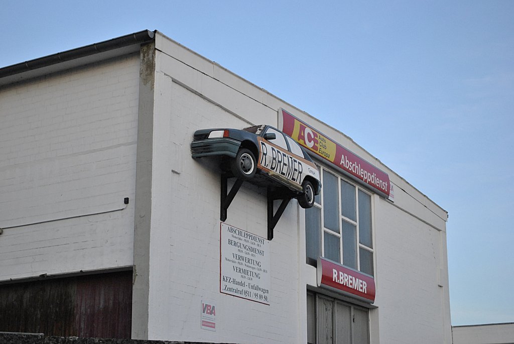 Halber Opel Katdett am 16.01.2011 in Lehrte, an der Wand festgemacht.