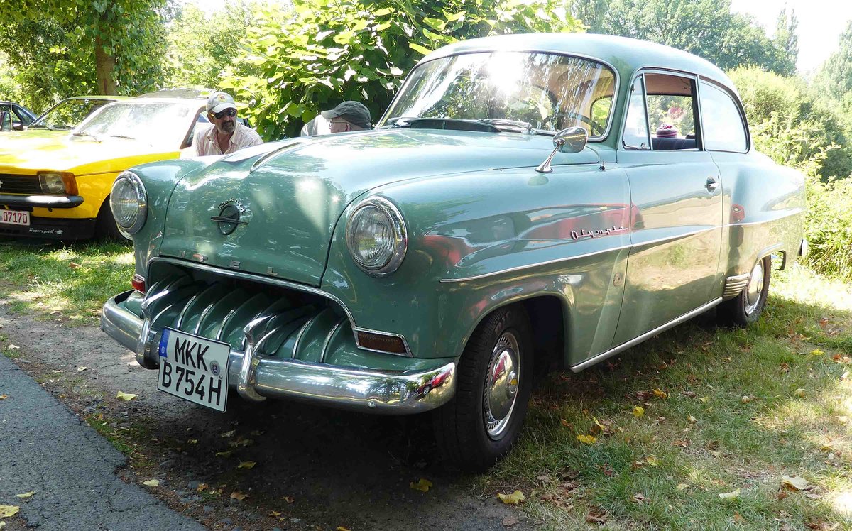 =Opel Olympia, ausgestellt bei Blech & Barock im Juli 2018 auf dem Gelände von Schloß Fasanerie bei Eichenzell