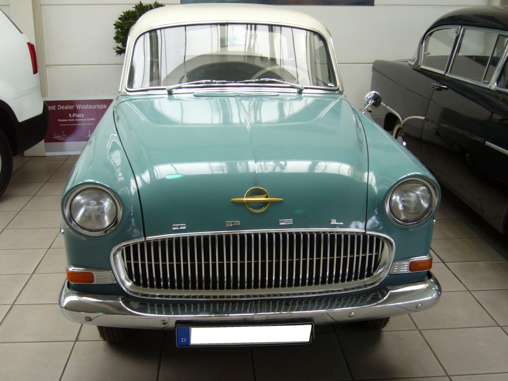 Frontansicht eines 1957´er Opel Olympia Rekord. Aufgenommen am 23.09.2012 im Showroom eines Dinslakener Opel Händlers.