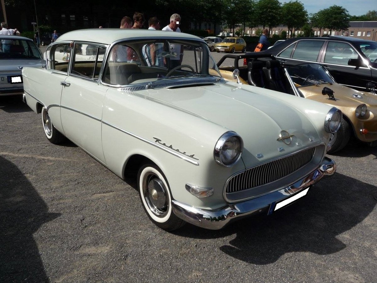 Opel Rekord P1 als zweitürige Limousine, gebaut von 1957 bis 1960. Während seiner 35-monatigen Produktionszeit, baute Opel 384.692 Limousinen, 109.282 CarAvan und 15.136 Kastenlieferwagen dieses Typs. Motorisiert war der P1 mit einem Vierzylinderreihenmotor mit einer Leistung von 45 PS aus einem Hubraum von 1488 cm³. Gegen einen Aufpreis von DM 75,00, konnte man einen 1.7l Motor mit 55 PS ordern. Da der P1 auch in die USA exportiert, und dort über das Buick-Händlernetz angeboten wurde, erhielt er im Volksmund den Spitznamen "Bauern-Buick". Der gezeigte P1 stammt aus dem letzten Produktionsjahr 1960. Oldtimertreffen Nordsternpark/Gelsenkirchen im Juni 2019.